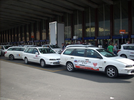 4. タクシーを利用する。ローマのタクシーには一抹の不安を覚える方も多いが、2006年よりボッタクリ等の被害の防止の為、定額料金制になっている。フィウミチーノ空港のタクシー料金に関するページはこちら