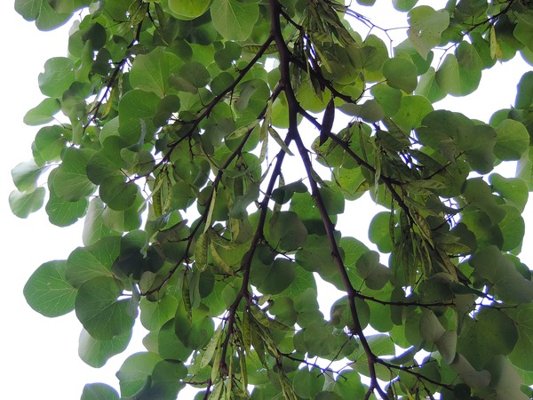 ↑ 今の時期、見られるものはこれ。かわいいハート型の葉っぱとお豆さん(豆果)です。小さい頃は、この様なかわいい葉っぱを本の間に挟んで押し花にするのが大好きでした。(今はもうやりません)