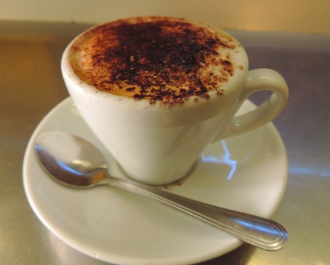↑ 店内を一通りチェックしたので、試飲のお時間です。今日はカプチーノにせず、モレット(Moretto)を頼みました。モレットはコーヒーの上に牛乳の泡、更にその上にココアをのせたものです。