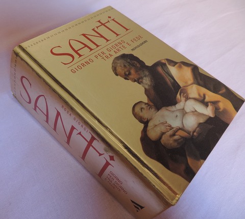 ↑ 本屋さんにはこの様な、”聖人”(サンティ Santi)の本も多数売られていますので、ご興味がある方は自分の誕生日の守護聖人がいったい誰なのか調べてみることも出来ます。この本は昔、絵や写真がたくさんあって主な聖人を簡単に覚えられるよ!試験対策用ということでプレゼントされたものですが、結構面白いので寝る前に読んだりして気に入っています。(Mondadori Electa社、15ユーロ)