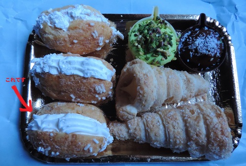 ↑ 写真の中で赤い矢印で示されているものが、マリトッツオです。このマリトッツオは5cm位のかわいいミニタイプです。