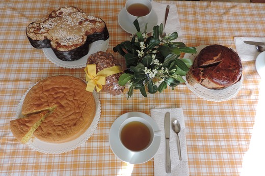 ヴァティカン市国もあるカトリックの国イタリアでは、イースターはクリスマス(ナターレ Natale)と並んで非常に重要な行事です。今日はそのイースターの日の朝ごはんです。