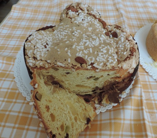 ↑ イースターにイタリア全土で食べられるハトの形をしたコロンバというケーキ。(コロンバ Colomba はイタリア語でハト)イースターの少し前から箱に入ってスーパーマーケットに並び始めます。