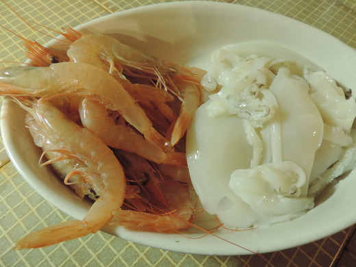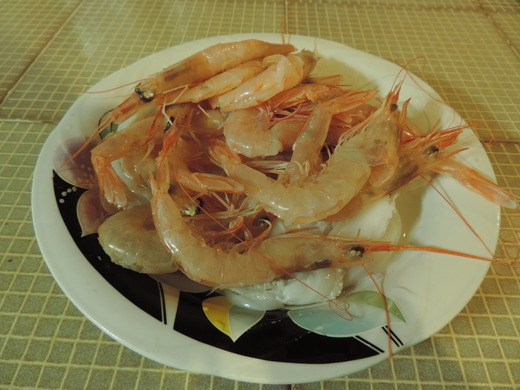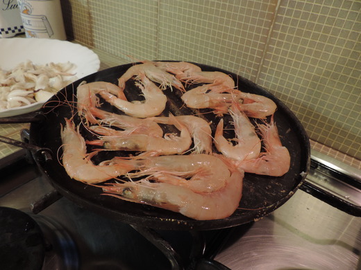 ↑ エビとイカ(甲イカでも槍イカでも)を適量購入します。今日は、エビ15匹と甲イカ3匹を使いました。