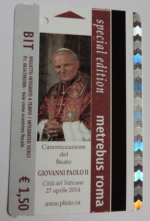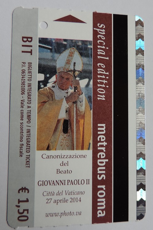 この度の4月27日のローマ法王2人同時列聖という大イベントを記念して、ATACが限定200万枚発行しました。