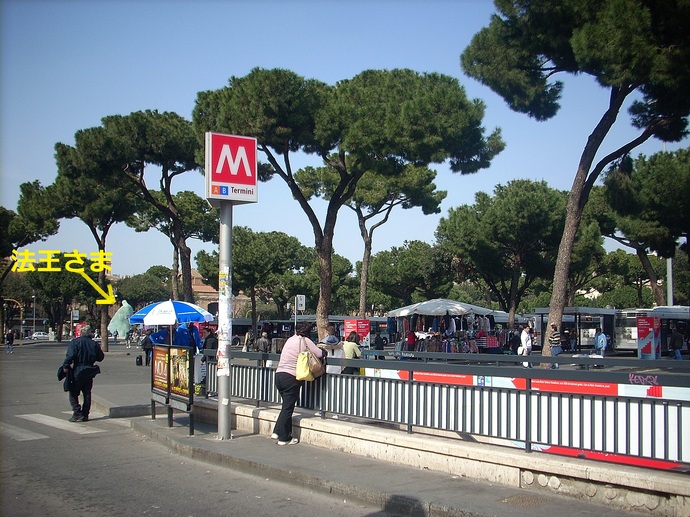 ↑ 地下鉄への出入り口です。ローマには地下鉄はA線とB線の2本があります。C線は現在工事中ですが、地下の遺跡にあたっている様でなかなか工事が進展しません。