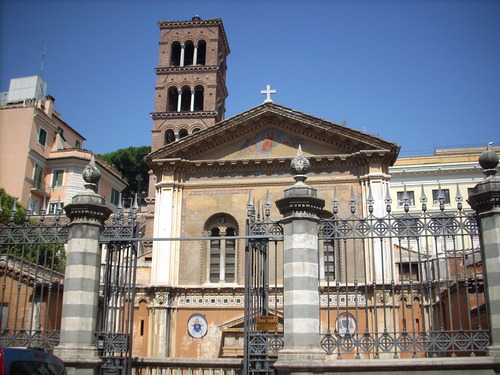 ↑ 教会の入口です。ローマでも、最も古い時代に創建された教会です。