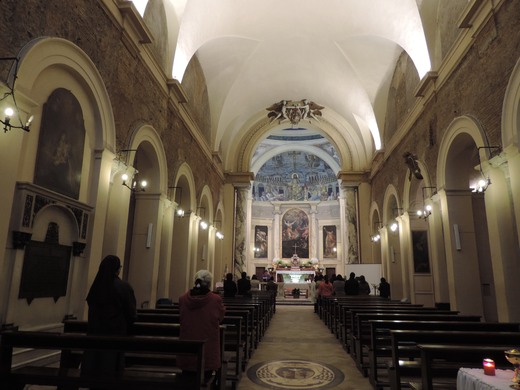 1588年頃にカエターニ枢機卿が内部の改修工事をした時に、彼は彼の時代のフレスコ画の方が良いと思ったのか(!)、古代のモザイクを壊してフレスコ画をかぶせてしまいます。