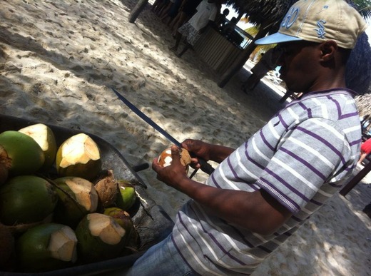 ↑ 後ろに勤務している客船が見えます。虎のバスタオルが・・・。真っ白の砂浜ですね!