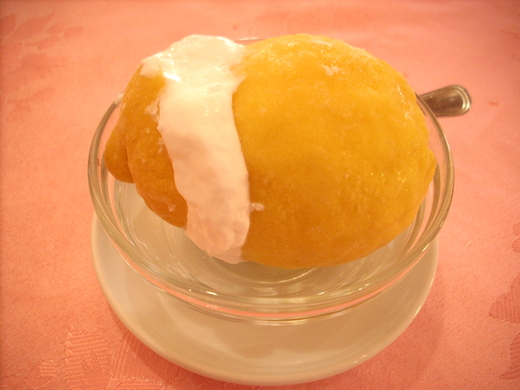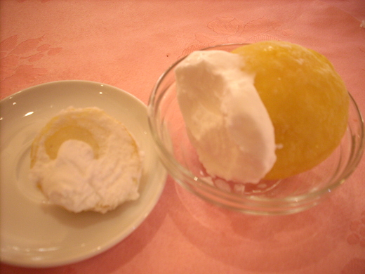 ↑ お店手作りのレモンのシャーベット。中華でデザートといえば、アイスクリームのフライ(天ぷら)が有名ですが、この手作りシャーベットは本当においしいのでお奨め!