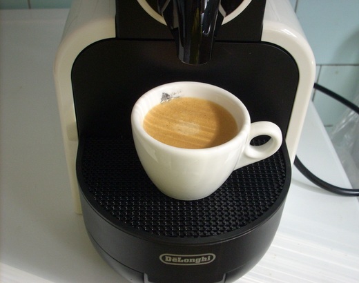 もっと濃い、リストレット・コーヒー(Caffè ristretto)というのもあります。リストレットとは濃縮したという意味で、この写真のネスプレッソのコーヒーメーカーにもリストレット・コーヒーにお奨めのコーヒーのカプセルが数種類あります。小さなカップに25mlと少量を抽出しますが、本当に強烈なコーヒーです!