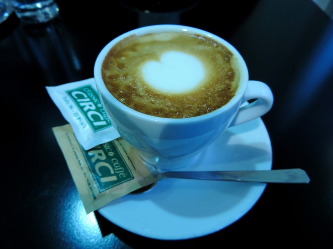 カウンターでカプチーノを頼むと、隣で立ってコーヒーを飲んでいたおじさんと何となく世間話に入りました。