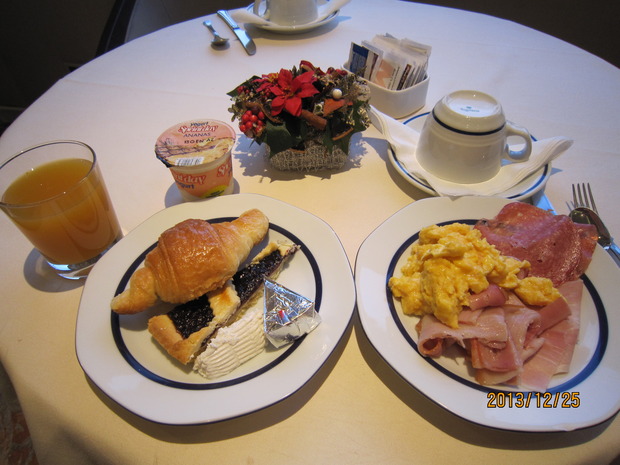 ↑ 日本人も楽しめる朝食だと思います。さすがにご飯はありませんが、各種パン、牛乳、ヨーグルト、コーンフレーク、ジュースなどあり。