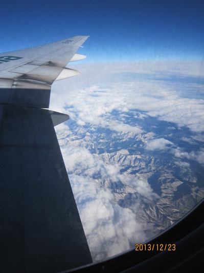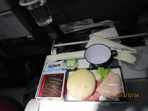 その他に毎回やっていることは、ずっと座っていると足が浮腫むので1時間に1~2杯、ミネラルウォーターを後部のセルフサービスコーナーへ貰いに行ってがぶ飲み、トイレも行ったついでに機内を行ったり来たりしてうろうろしています。