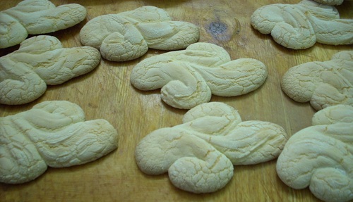 これは”Giglietti” (ジリエッティ)といって、百合の花の形をしたビスケットでパレストリーナの名物。卵、小麦粉、砂糖を混ぜて百合の形を作りオーブンで焼く。さっぱりしたボーロのような味。