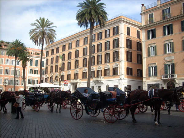 さて、女性では今日もまだ上半身裸風(?)の服装の人もおり暖かいローマですが、先程、スペイン階段のあるスペイン広場の様子を撮影してきましたのでご覧下さい!