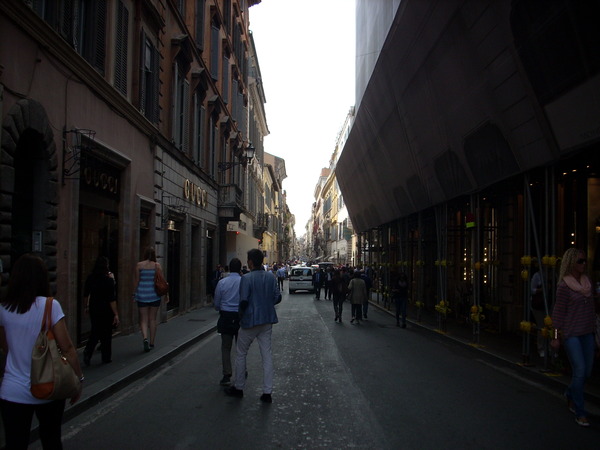 ↑階段の正面は高級ショッピングストリート、コンドッティ通り Via dei Condotti。写真左側にグッチがあるのが見えますね。フェンディ Fendi などイタリアンブランドの本店もここにあります。