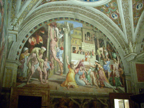 修復前はろうそくを燃やした時のすすなどが(一応、機能としては礼拝堂ですので)、天井にあるミケランジェロの500年前のフレスコ画の表面にべったりとついていて絵が薄黒くなっており鑑賞できる状態ではありませんでしたが、今日では壁面にあるルネッサンス時代のボッティチェッリなどの名立たる画家達の絵が、色鮮やかな状態にもどっています!