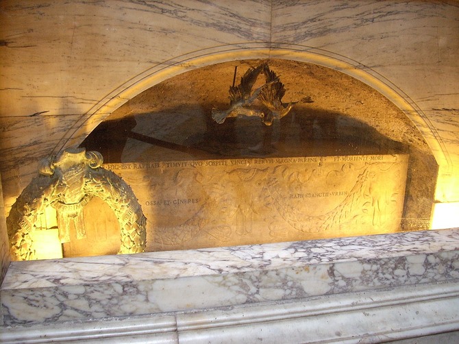 ルネッサンス時代の画家ラファエロも自らパンテオンの中に眠ることを希望しました。こちらは彼のお墓です。
