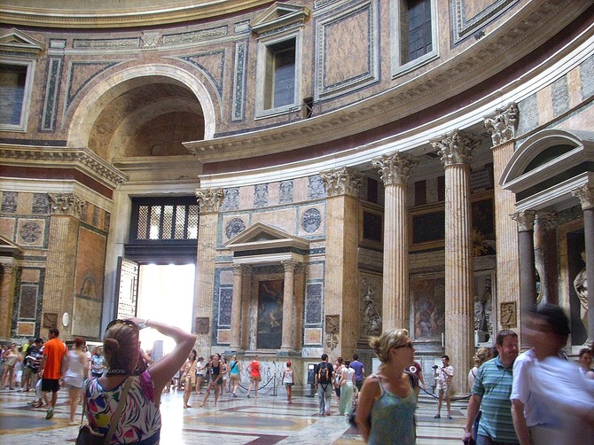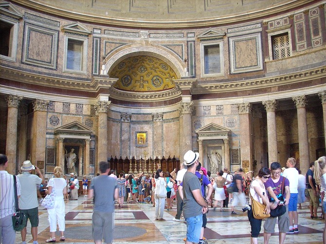 パンテオンでは、その大きさ、美しさと調和、古代の英知の集大成ともいえるローマ建築技術の高さを体感してみて下さい!お奨めパワースポットです。