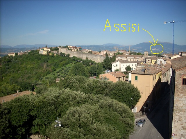 ペルージャにある外国人大学の屋上より。世界遺産 サン・フランチェスコ聖堂とそのゆかりの地で知られるAssisi アッシジ (ぺルージャの東25km) もペルージャから鉄道で20~30分です。