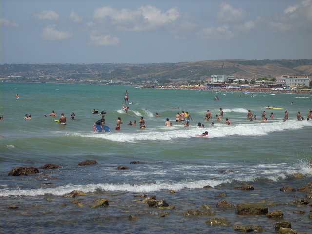 イタリア人の場合、海で”泳ぐ”というよりも、砂浜に寝そべってのんびりしたり、日焼けをしたりするのが目的なので(特にヨーロッパ人には太陽に対する強い憧れがあります)、イタリア人の友達と海へ来ても日中はずっと本を読んでいて、帰る頃にやっとちょろっと海へ入ったりすることが良くあります。