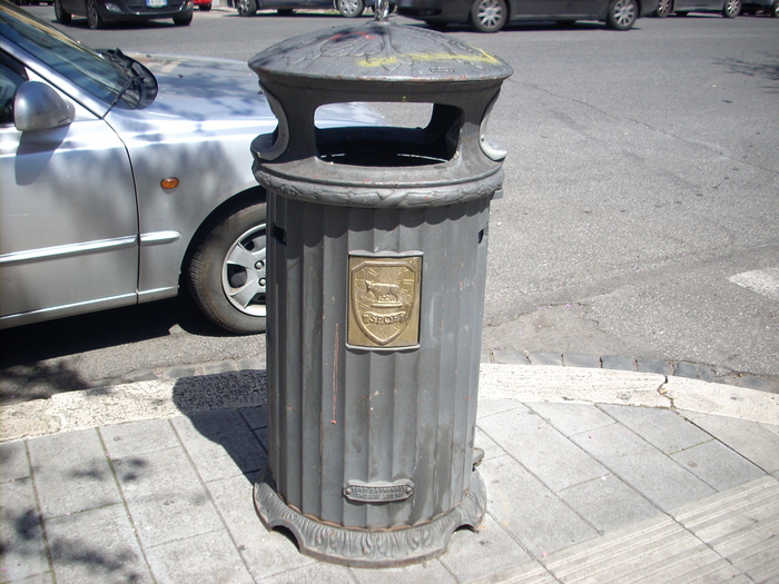 ゴミ箱にも雌オオカミのシンボル。