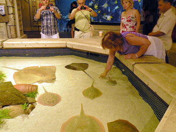 「タッチプール」という名前の通り、数種類のエイとカブトガニが泳いでいるこのプールでは、それらに触ることができるんです。