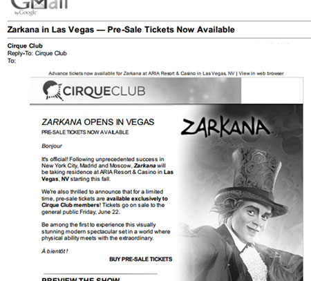 サーク・クラブ(誰でもメンバーになれるシルクド・ソレイユのファンクラブみたいなもの)メンバー限定で