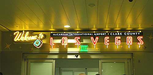 入国審査が終わったあとの、到着ロビーへの出口には「Welcome to LAS VEGAS」と