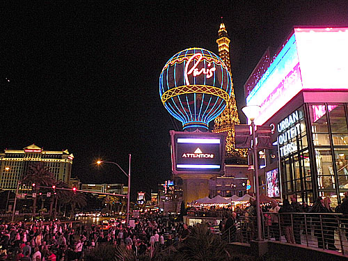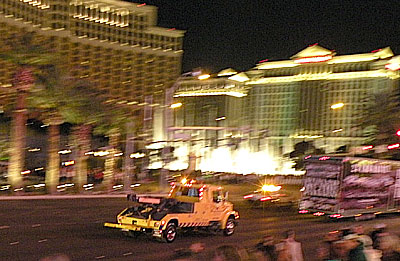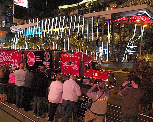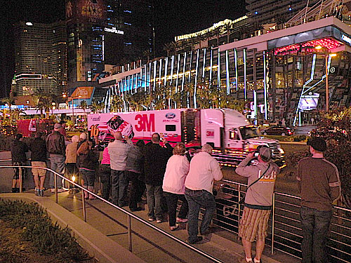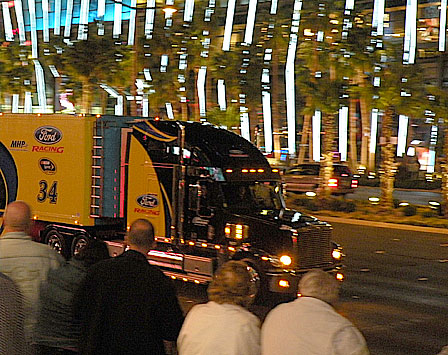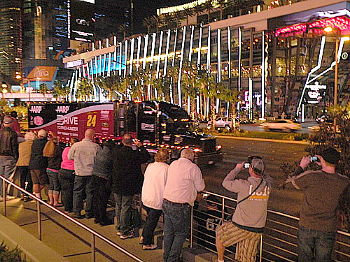 この「パレード」はストリップの南にある、サウスコーストホテルのトラック用駐車場に集結(!)したあと、