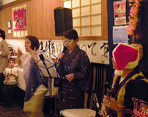 クリスマスパーティでは、県人会の皆さんによる「SHIMA TIME」とコラボの唄あり、踊りありで、
