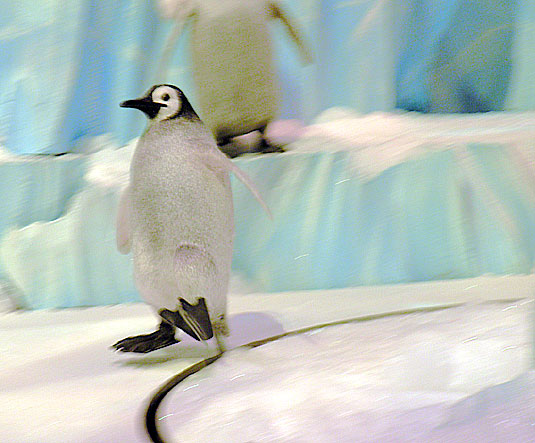 スケートしてるペンギンとか、ホッケーのスティックでイグルー用の氷の塊を運んでいたり。