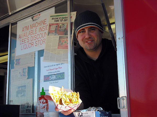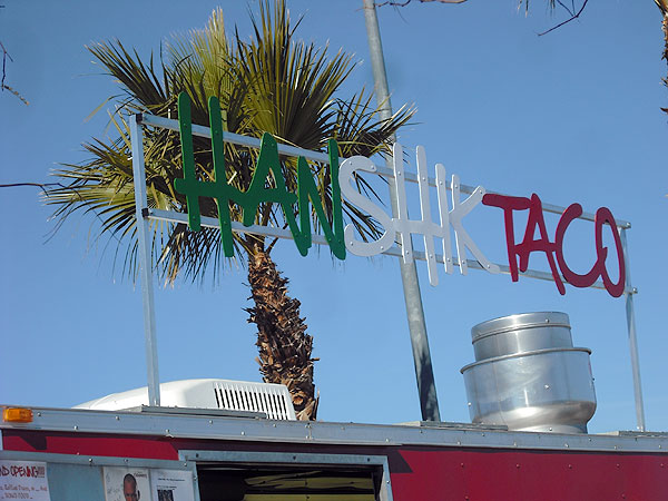 キムチを使ったタコスは意外においしいのが驚き。このトラックは、毎日同じ場所で営業中。