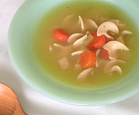 チキンと玉ねぎ・にんじん・セロリなどの野菜からスープを作って、エッグヌードル(あるいはパスタ)を入れたもの。