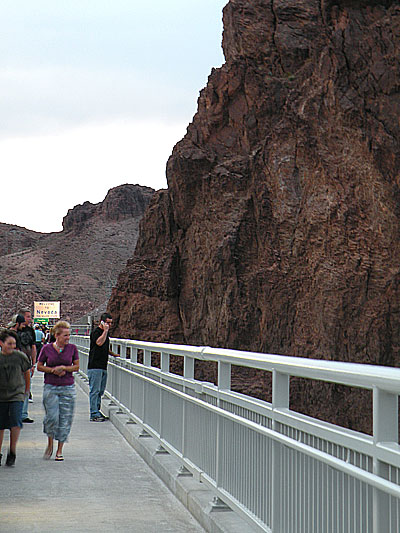 遊歩道は橋の北側(ダム側)にあるので、壁を隔てた道路はアリゾナからネバダへ向かう車線です。