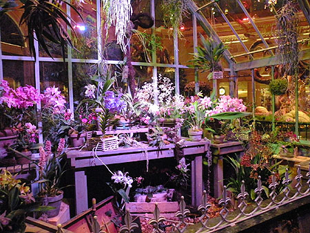 この温室、春には蝶々を集めていましたが、今回はエキゾチックな数々の蘭の花がディスプレイされていました。