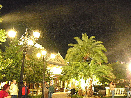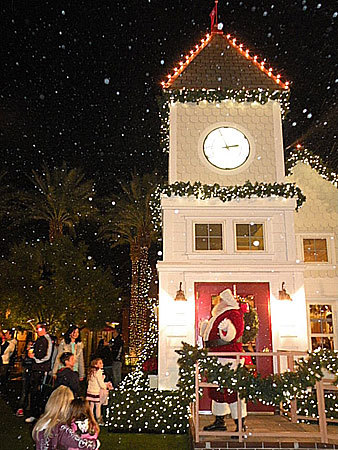 タウンスクエアの真ん中にあるタウンスクエアパークのサンタハウスで、ちびっこたちがサンタと一緒に写真を撮れるようになるんですが、そのサンタハウスの周りでは、なんと1日一回雪が降るのです。