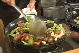 写真のように、材料説明の後カウンター越しに作る様子をじっくり見て、できあがったら