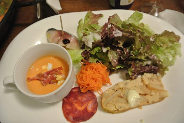 みんなで頂きまーす。パエージャ以外に前菜1品のレクチャーもあり、なんと飲み放題+