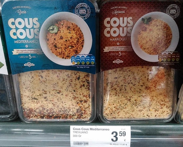 インスタントクスクスを買ってみました。地中海風(青)とモロッコ風(赤)があり、