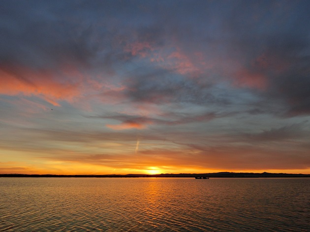 <夕暮れにアルブフェラ湖の遊覧ボートに乗ると、こんなきれいな景色が見られることも>
