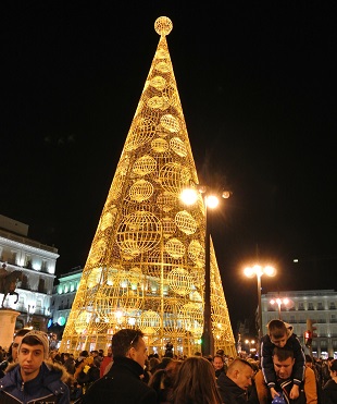 あるプエルタ・デル・ソルに立つクリスマスツリー。