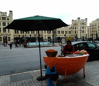 オレンジが甘くておいしい季節です。バレンシア市内で、オーダーごとにその場でオレンジを