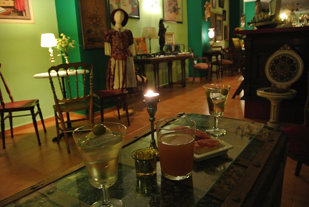 バルというよりも、アンティークショップのような様相。怪しい雰囲気を醸し出す照明。