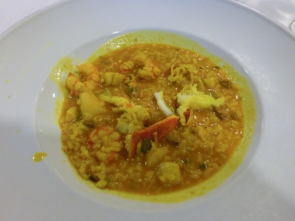鉄板焼きにしてもらい、塩とレモンでどうぞ。ロブスターリゾット(Arroz meloso de bogavante)も