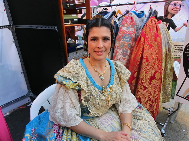 18世紀のバレンシアの宮廷ドレスが原型のバレンシアの民族衣装。この時期に町を歩くとあちこちで