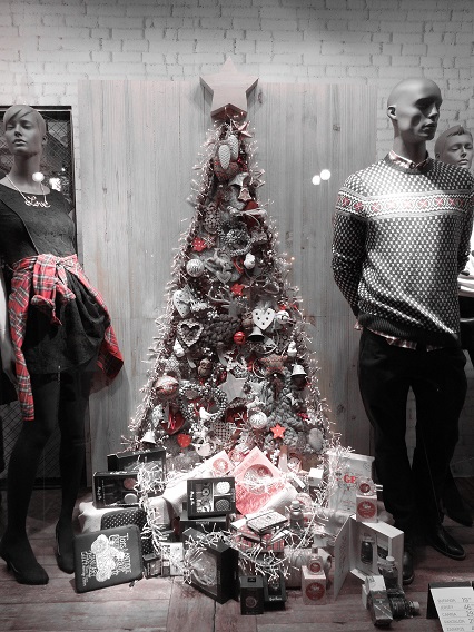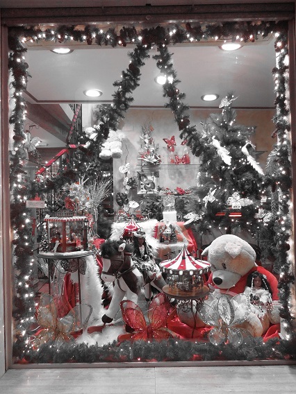 街を歩きながら、クリスマス仕様になったお店のウィンドーやツリーなどのデコレーションを