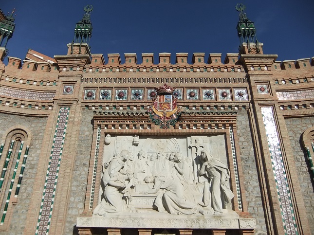 <駅を出て町に入る時に登る大階段の正面にあるレリーフは、テルエルの恋人たちがテーマ>