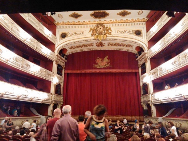 私はこの劇場の内装がとても好きです。舞台を囲んでU字形に座席が並び、ロココ調のクラシックな